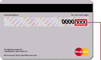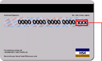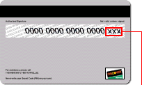| For Visa/MasterCard/Discover, enter the last 3 digits of the number printed on the back of your credit card in the signature strip. For American Express, enter the 4 digits which are printed to the right of the imprinted card number on the front of your credit card. | |
